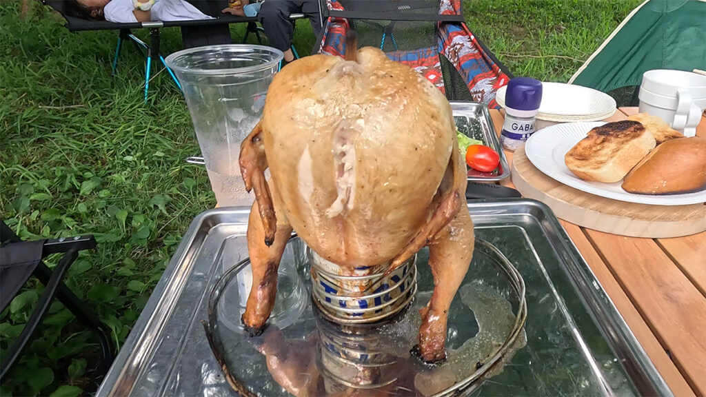 - ビア缶チキン(ビール缶を使った鶏肉丸焼き)