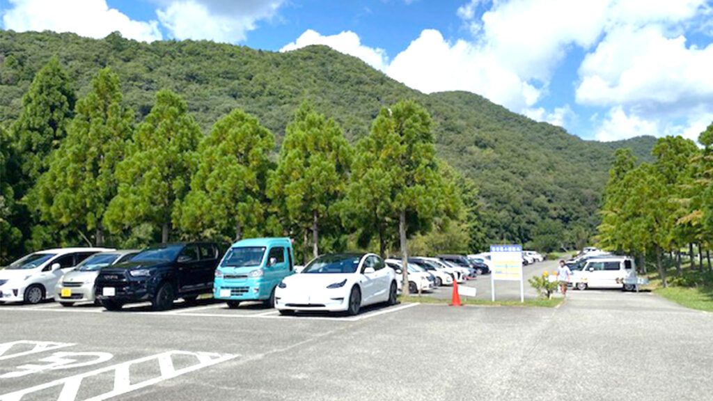公園の手前に第二駐車場(無料)がありますが、第二駐車場から公園まで若干歩くので、混んでいなければ公園敷地すぐ横の第一駐車場に車を止められます!